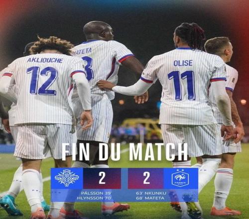 北京时间10月14日,在世预赛欧洲区的比赛中,法国队依靠恩昆库和马特塔的进球客场2-2战平冰岛,目前他们以3胜1平的成绩位列D组的第一位。