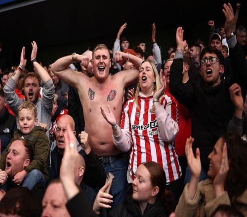 看台上的桑德兰球迷欣喜若狂。