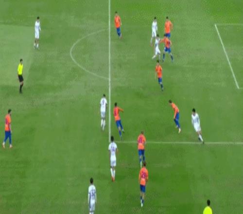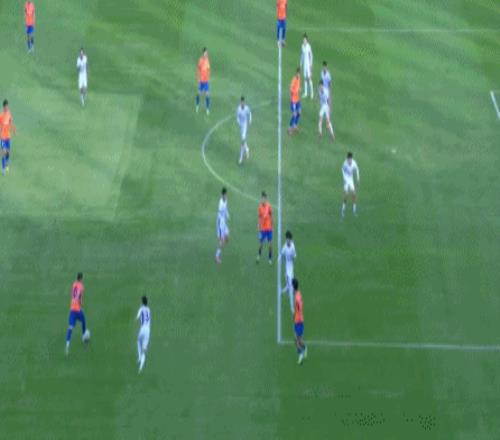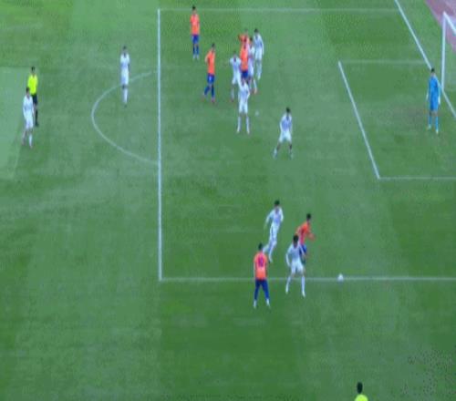 比赛的第17分钟,卡扎伊什维利右路带球内切,左脚精准斜射破门,1比0!