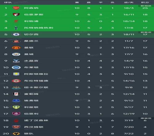 北京时间11月2日,英超第10轮结束了7场比赛,最新积分榜如下!