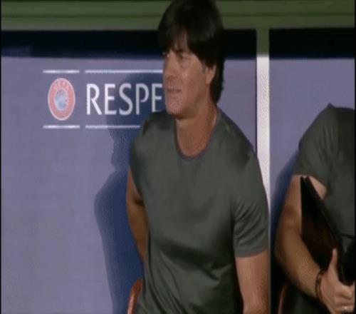 但要说这条赛道上的元老选手,那必须有勒夫一席之地。除了甚至已经不能算是名场面的吃鼻屎,2016年在对阵乌克兰的欧洲杯中,他单场就祭出了闻裤裆+扣屁股+玩口香糖的三连招,只好求对方主帅赛后与他握手时的心理阴影面积了。