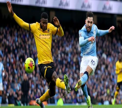开场之后,曼城就大举压上,开启了传控的压迫性打法,狼队防守有些顾此失彼。第6分钟,努内斯边路没有任何调整,直接传球,狼队中卫准备头球解围,被马尔穆什抢先一脚,将球打进。
