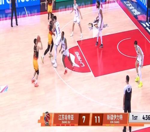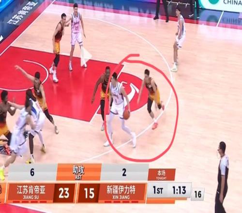 阵地战防守,庞峥麟也有出色表现。这一球庞峥麟发现队友补防后漏人,自己又去帮队友协防卡位,并且协防成功,让新疆球员吴冠希接球失误,说明他拥有不错的团队防守意识