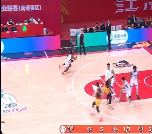 除依靠速度外,庞峥麟也能利用技术和节奏攻击篮筐,比如这一球他是在突破过程中使用了顿拜技术,晃到了外援,成功上篮打进。